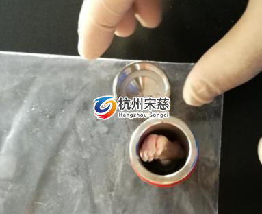 1.要先取1個大鼠的腳板放進到鋼罐里再在其添加配套設施的研磨珠。2.把含有試品的鋼罐放進到液態氮中進行冷藏。3.再把鋼罐放進多樣品組織研磨儀設備的適配器中。4.把研磨設備的參數按要求設置。5.研磨程序結束后 ,就可以獲得樣本了,如下圖所示。